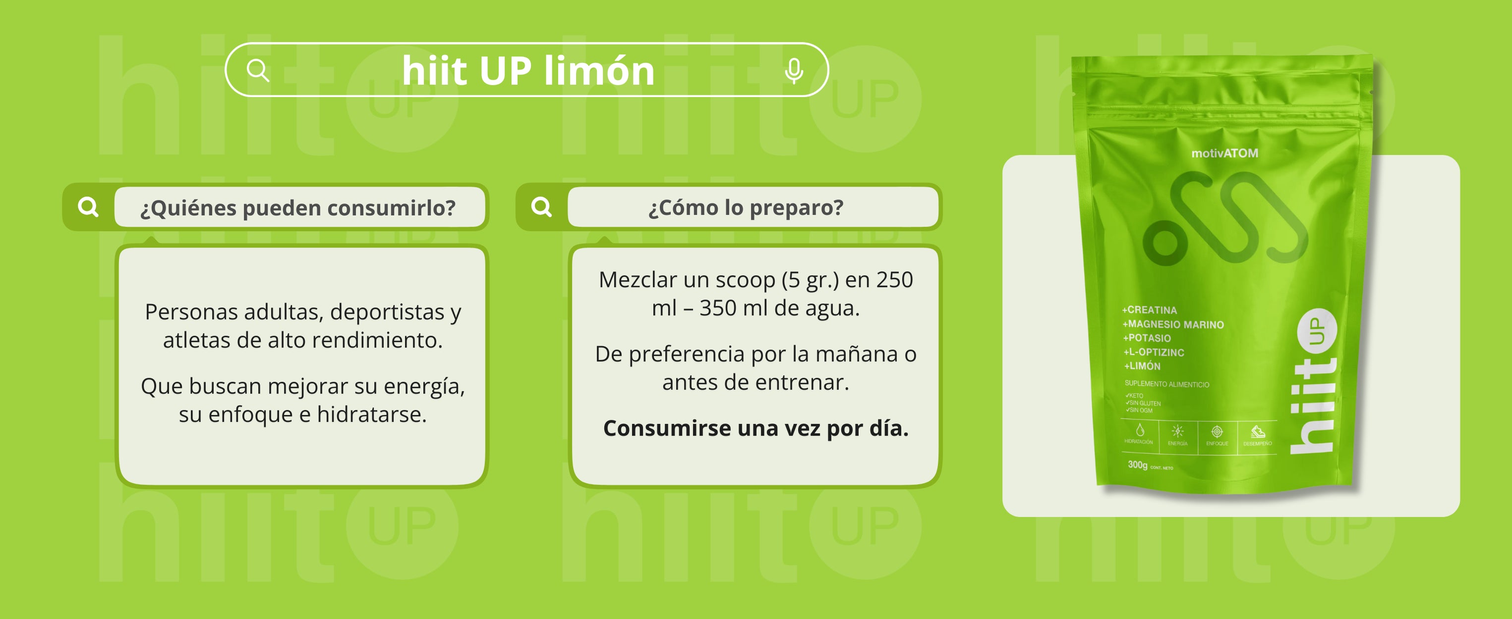 El hiit UP sabor limón es una fórmula diseñada para ayudarte a mantener tu energía, hidratación y rendimiento durante todo el día, con ingredientes seleccionados para potenciar tu bienestar diario.